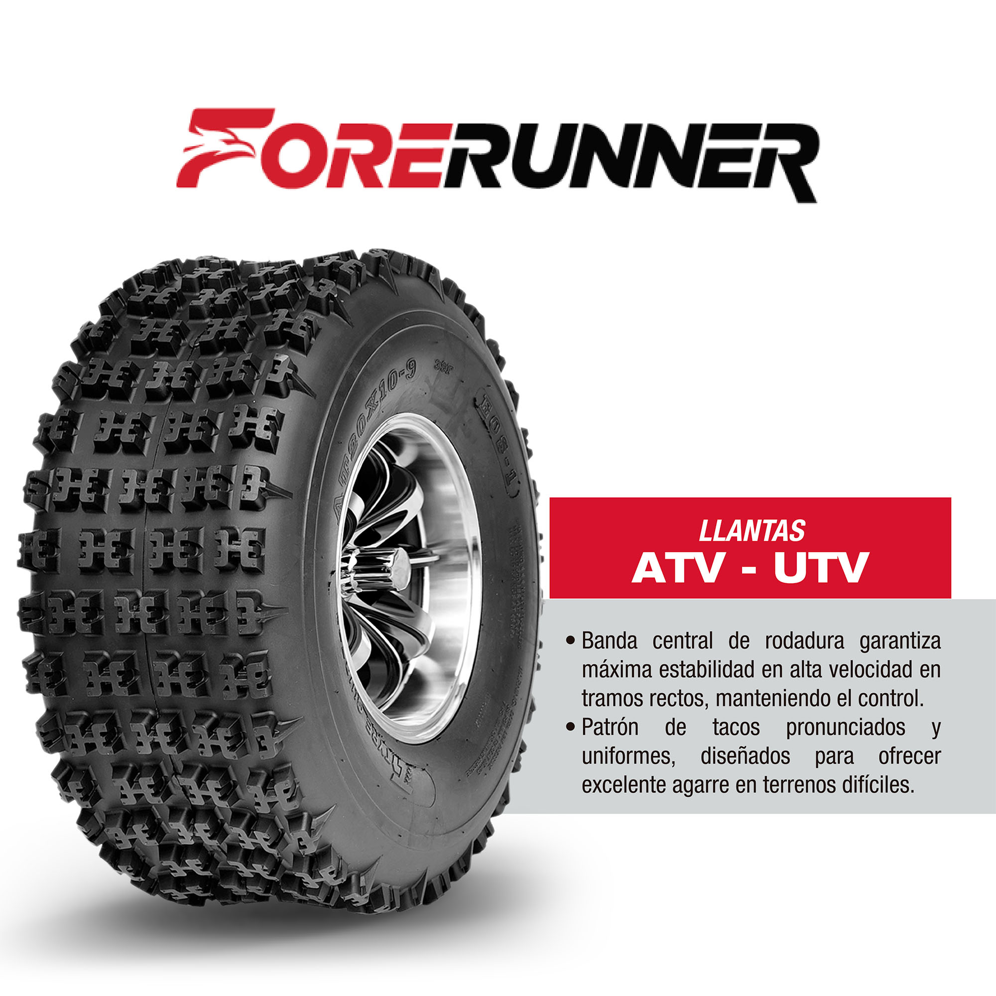 FORE RUNNER Compuesto de caucho especializado para darle a tu cuatrimoto o ATV, una excelente tracción en terrenos desérticos y rocosos. Es una llanta de muy buena durabilidad. Diseñadas para resistir en terrenos difíciles, ofrecen durabilidad y tracción excepcional. Con un diseño robusto y una construcción resistente, aseguran un desempeño confiable en trabajos pesados. LLANTA […]